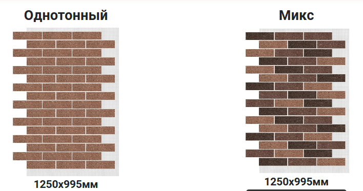 Гибкий кирпич для фасада и цоколя выпускается в двух сериях однотонный и микс (несколько цветов кирпича):